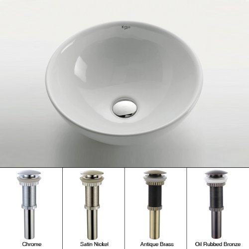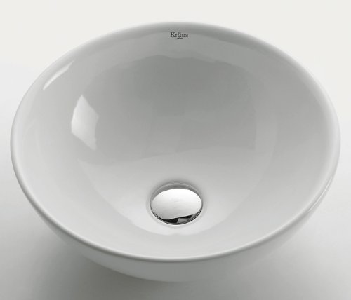 Kraus KCV-141-CH White Round Ceramic Bathroom Sink with Pop Up Drain Chrome