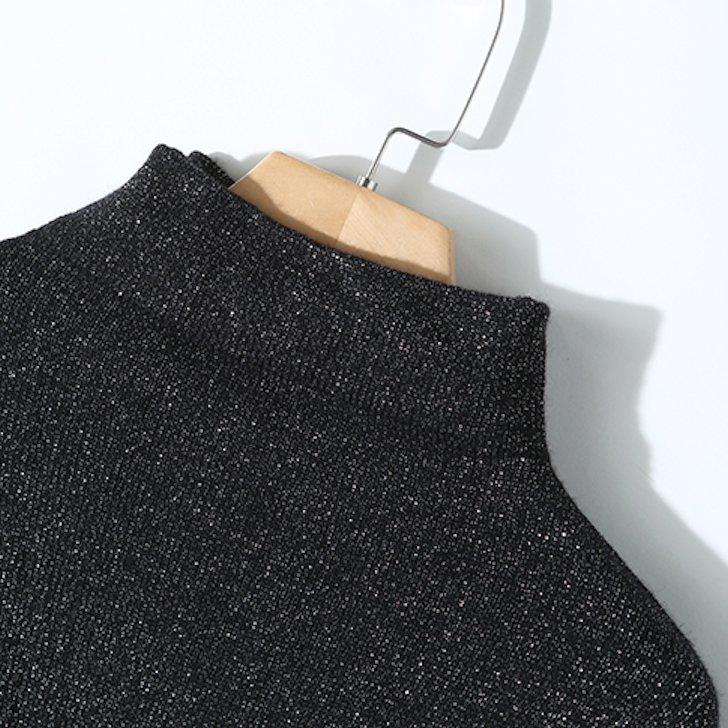 スカートのミニ丈感とハイネックが大人女子な印象にも◎