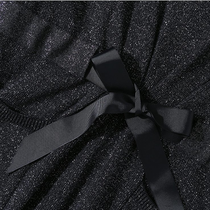 ウエストリボンがとってもキュートなラメ素材ニットワンピース。