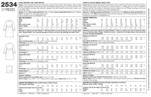 -. Title : Simplicity Sewing Pattern 2534 Child and Girl Jackets and Coats