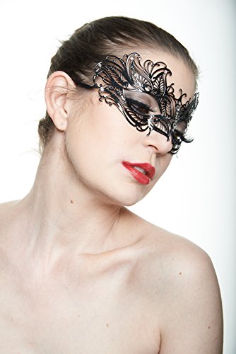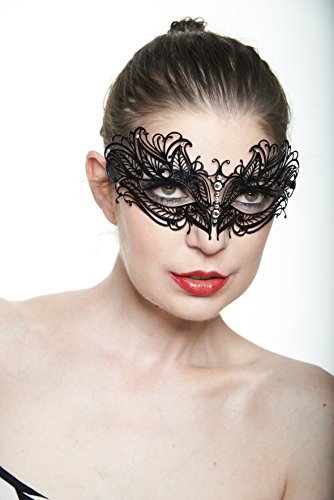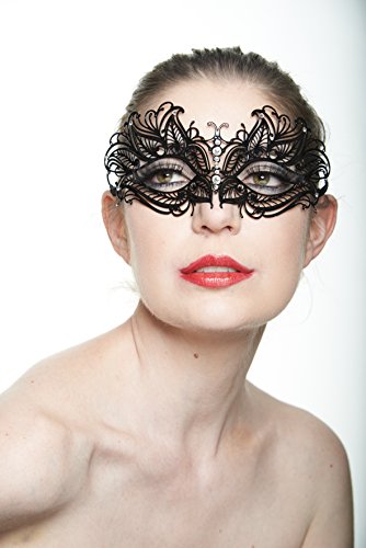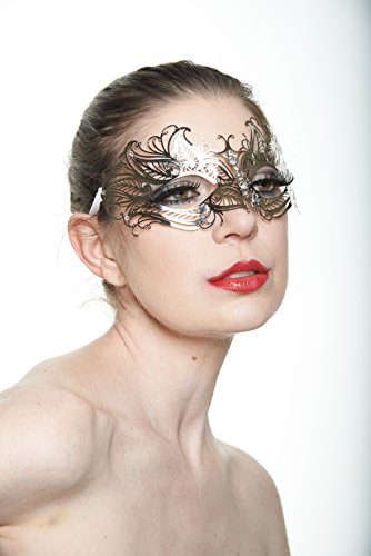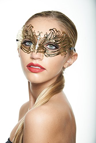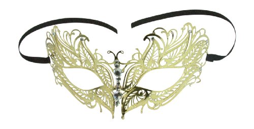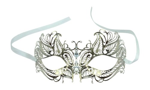-. Brand : KII -. ClothingSize : One Size -. Department : womens -. Feature : The whisper of a butterfly's wings floats on your face with the upward sweep of the delicate lacework framing a central spine adorned with rhinestones / Your eco friendly, lightweight, metal alloy mask will never flake or discolor and is adorned with genuine Preciosa clear rhinestones / Featherweight, adjustable metal alloy is intricately laser cut to a paper thin filigree resembling lace and yet it's extremely strong / Just bend and shape to suit your face shape and hold in place with the double-faced satin ribbons so it's comfortable all night long / Other colors and styles for men, women & teens available under separate listings including Butterfly, Skull, Phantom, Swan, North Star and many more. -. ProductGroup : Apparel -. ProductTypeName : ADULT_COSTUME -. Size : One Size -. Title : Beautiful Butterfly Masquerade Mask (Clear Rhinestones; One Size Fits All)