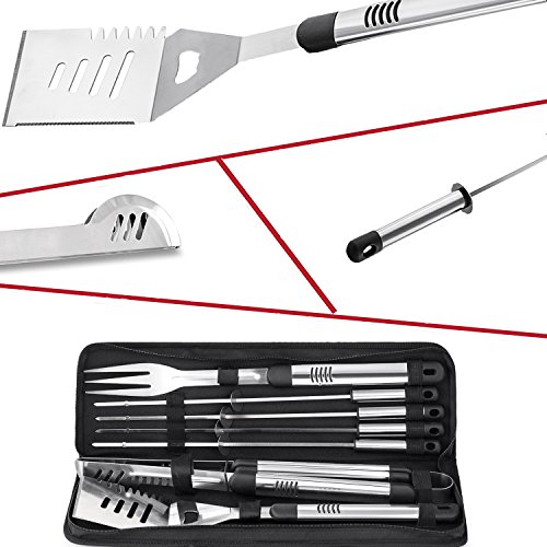 Studio : Hoonay Publisher : Hoonay Product Description Hoonay 7-piece barbecue gift set will handle all your favorite outdoor cooking masterpieces! Save your money and time to choose our grill tool set.You will love it. Here's what you need Our heavy duty barbecue set includes spatula, fork, tongs and skewers to meet all your barbecue needs. With Hoonay BBQ Tool Set, you can easily cook burgers, ribs and more to perfection. ^-Ergonomically designed with extra-long handles provide a secure grip as you work. ^-Each handle has holes to hang these tools for easy access. ^-Stainless steel tools are flexible, durable and strong. ^-BBQ accessories are long-lasting, safe and easy to clean. ^-A carry case makes you easy to store and transport. ^-Our perfect gift for your outdoor barbecue enthusiast or a great way to treat yourself. If your Dad, husband or good friend loves a good BBQ then they'll be sure to love this BBQ Tool Set. Package Includes: 1 X Multipurpose Spatula 1 X Tong 1 X Fork 4 X Skewers 1 X Carry Case 0