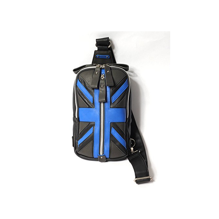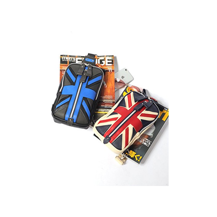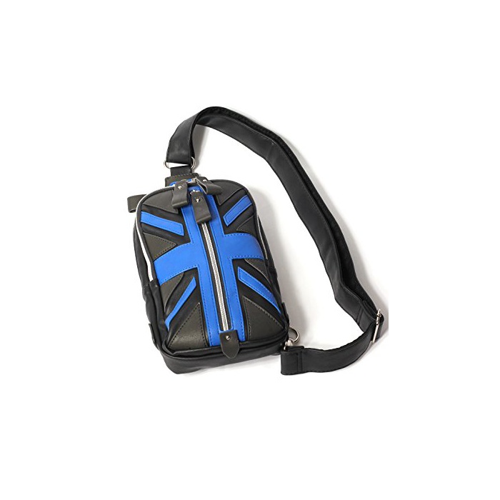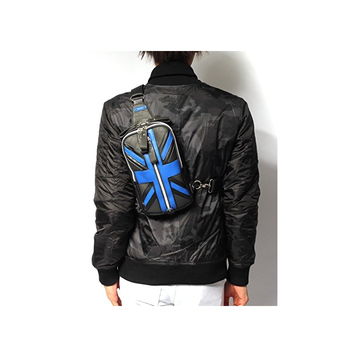 (re pea 드) REPIDO 바디 백 맨즈 숄더백 원 숄더백 백 가방 가방 유니온 잭 PU레더 피혁 소형 캐주얼 레이디스 유니섹스 블랙×로얄 블루 Free