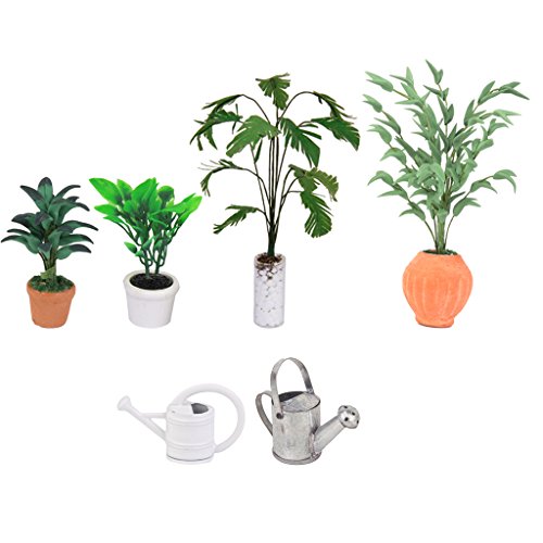 Green Plant in White Pot Dollhouse 1/12 Miniature Garden Accessory