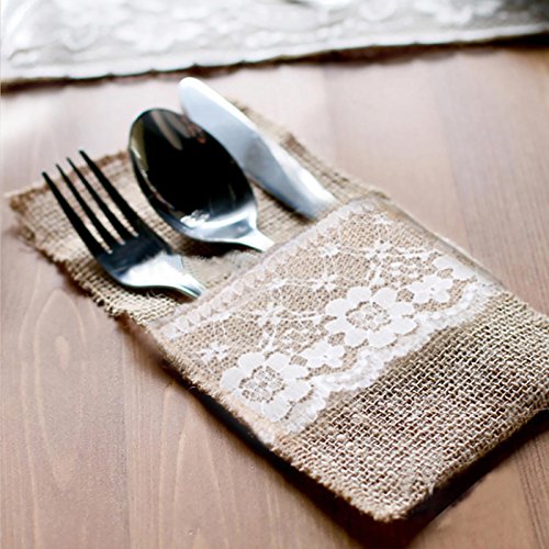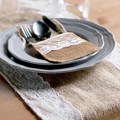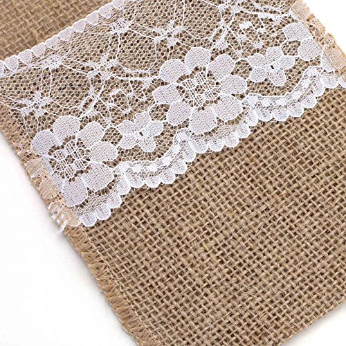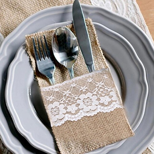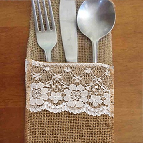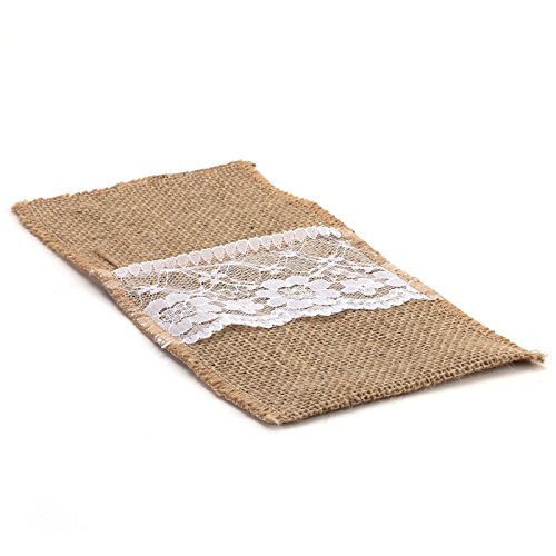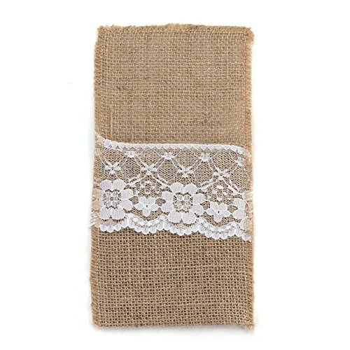 Studio : vLoveLife Publisher : vLoveLife Product Description Material: Hassian Burlap Lace Size: 4' X 8.5'(10cm x 22cm) Natural Burlap with Soft White Lace. Full Dimension: 4" x 8.5", Pocket depth: 4.8". Serged Edges. This rustic silverware is made of natural burlap jute. These are perfect for burlap themed events, weddings, parties, gifts or any rustic decor. They are great for everyday use as well! We have matched jute burlap table runner to make everything more perfect. 0