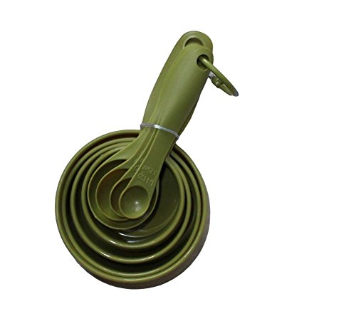 Measuring Cup and Spoon set in green plastic includes 4 cups and 4 spoons in graduated sizes