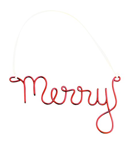 Red wire "Merry" ornament is made from red colored aluminum wire and is ready for hanging or display