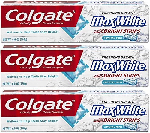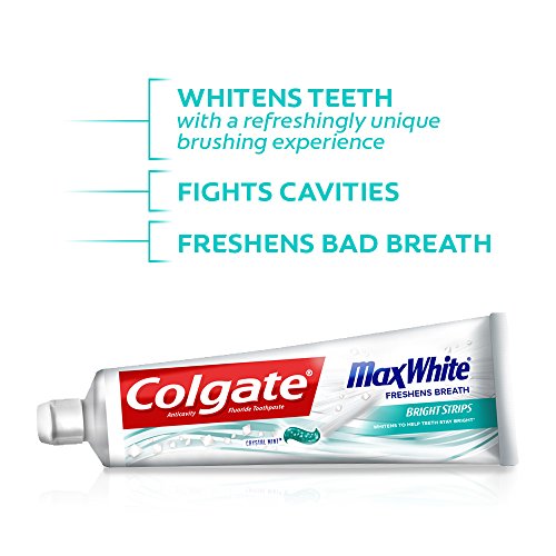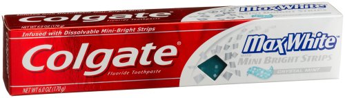 Every time you brush with MaxWhite toothpaste, the formula with mini-bright strips releases a burst of teeth-whitening power to help teeth stay white (with continued use) and bright! Colgate MaxWhite with mini-bright strips also fights cavities while whitening teeth with a refreshingly unique brushing experience. For information about this product visit http://www.colgatemaxfresh.comFeature