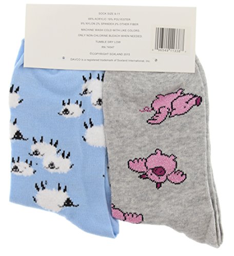 -. Feature : Davco Women's Crew Socks / Colorful, Novelty Designs / Dog breeds, P.R.Incess kittens, French bulldogs, lobsters, pandas, tabby kittens, flying pigs and counting sheep / Two Pair Value Pack / One Size 9-11