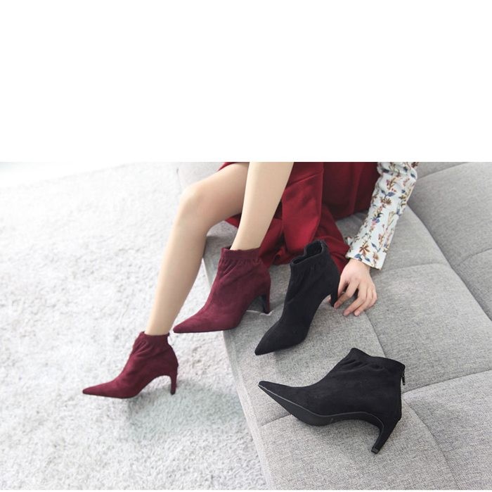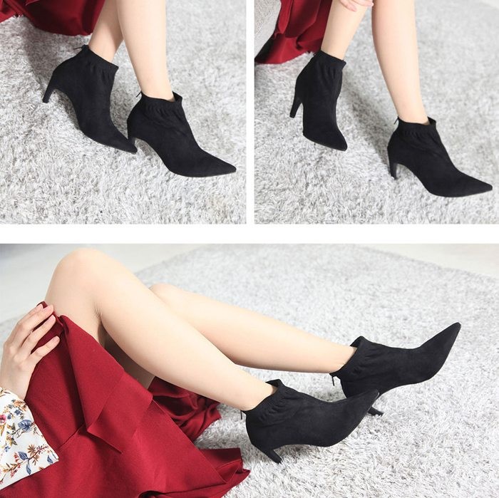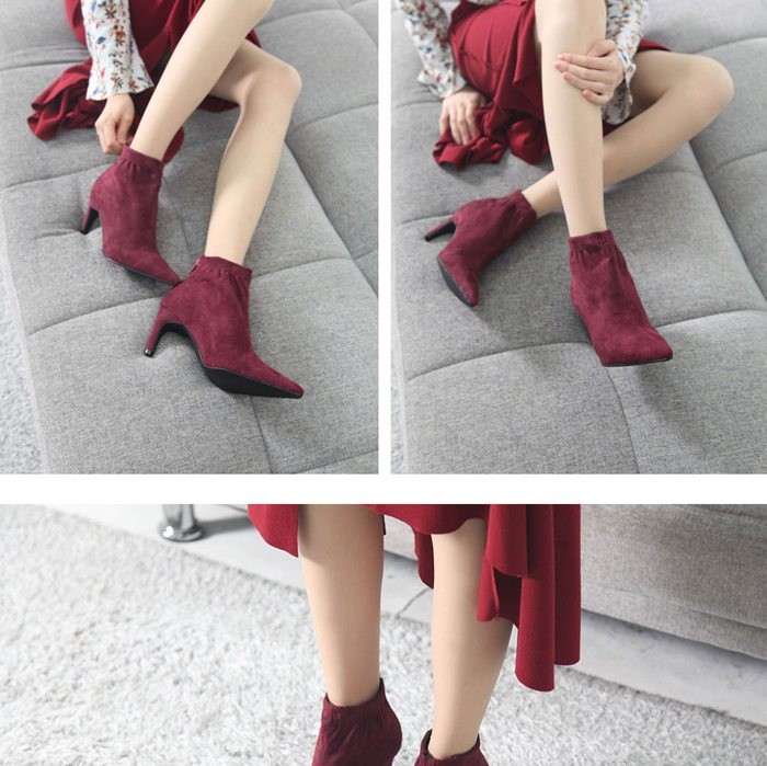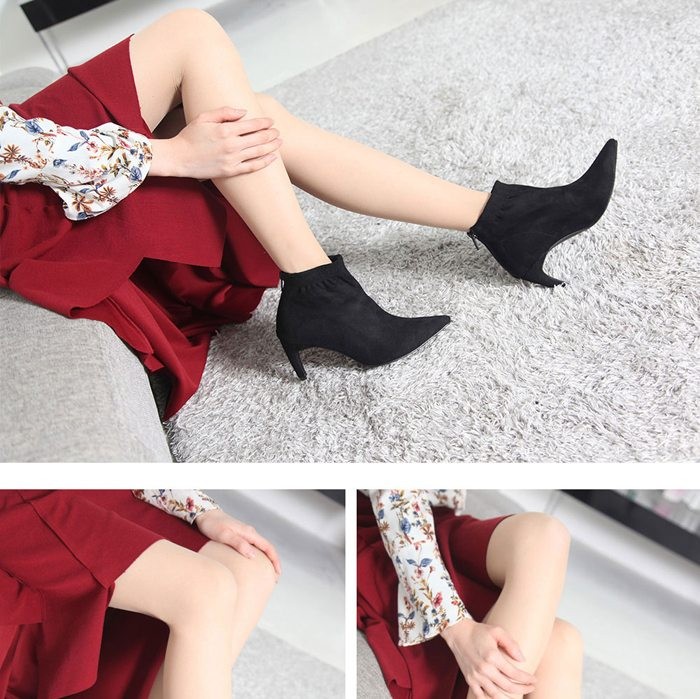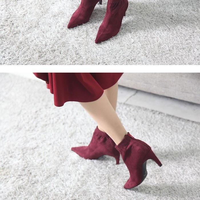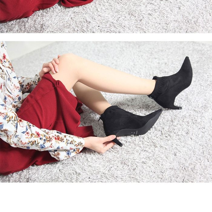 商品名:ブーティ レディース ブーティー ポインテッドトゥ ピンヒール スエード調 2017 秋冬 ファッション 靴 婦人靴