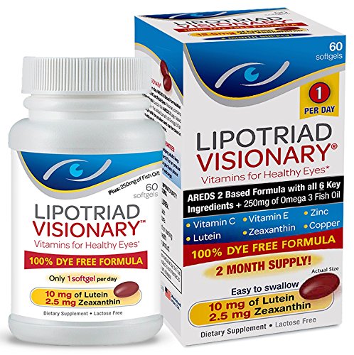 Lipotriad Visionary AREDS2 Based Eye Vitamin and Mineral Supplement - Includes all 6 key ingredients in the AREDS 2 Study - 2 Mo Supply, 1 Per Day, Dye Free,...