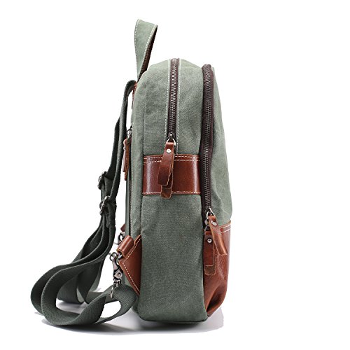 -. Feature : Material: Lightweight Canvas, Top Grain Crazy Horse genuine cow leather / Size: Long 10inch * Width 4inch * High 14inch / Item weight: 1.6lb / Pack internal structure: mobile phone bags, sandwich zipper bags, document bags, zipper pocket