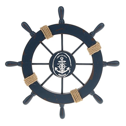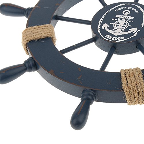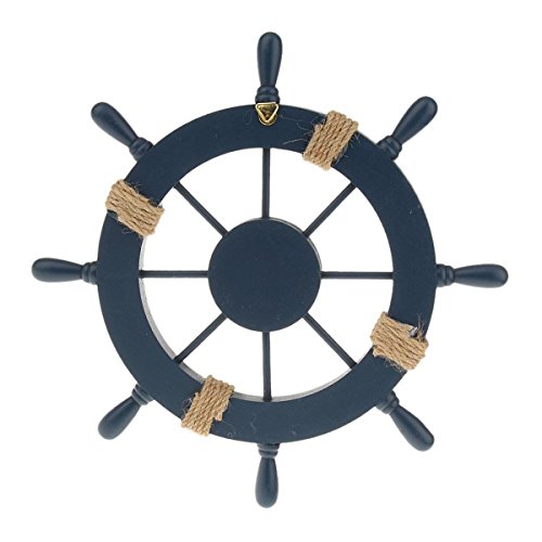 WINOMO Wooden Nautical Wall Decor Boat Rudder Home Decor Wall Pendant Decor (Deep Blue)