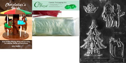 Cybrtrayd Tree Assortment Chocolate Mold with Chocolatier's Bundle of 25 Cello Bags, 25 Red Twist Ties and Chocolatier's Guide