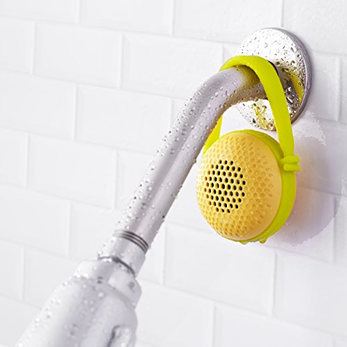Built-in mic for making phone calls; power and volume-control buttons; silicon handle for hanging; USB charging cable included