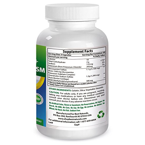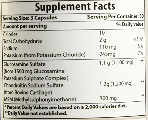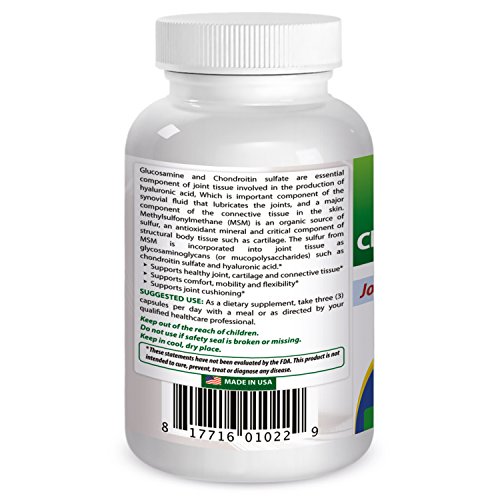 Glucosamine Chondroitin and MSM Joint Supplements, 2600 mg per serving - 180 capsules per bottle