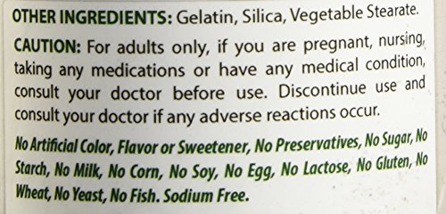 No Artificial Color, Flavor or Sweetener, No Preservatives, No Sugar, No Starch, No Corn, No Egg, No Lactose, No Gluten, No wheat, No Yeast, No Fish. Sodium Free