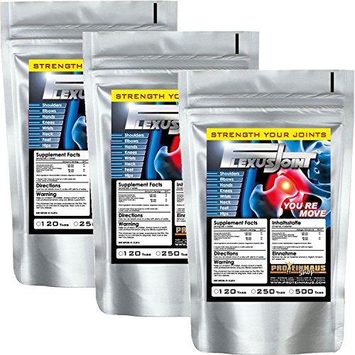 Besuchen Sie unseren Shop hier und finden Sie noch mehr günstige Supplements, einfach unterm Preis auf das Blau gekennzeichnetes Proteinhaus Inc. Klicken Glucosamine: Aminozucker Glucosamin besonders gut für Knorpelsubstanzen Wirbelsäule und Gelenke. Auch die Synovalflüssigkeit benötigt Glucosamine. Glucosamin ist quasi für Sehnen Bänder und Knorpel der Grundbaustoff. Eine zusätzliche zufuhr des Glucosamin Bausteines ist sinnvoll, da der Menschliche Körper im zunehmenden fortgeschrittenen alter leider die Fähigkeit verliert die nötigen Bausteine die für den Gelenkstoffwechsel notwendig sind selbst aus der Nahrung zu synthetisieren. Chondroitin:Chondroitinsulfat wird verwendet in der Behandlung von Hüften, Knie oder auch Finger. Um Arthrotischen Verschleißerscheinungen vorzubeugen wir Chondroitinsulfat als Nahrungsergänzung eingenommen um um den Knorpel gesundzuhalten und Verschleißerscheinungen wie Chondroprotektion vorzubeugen. Da es ebenfalls Gelenke und Knorpel betrifft wird es gerne mit Glucosamin vermischt MSM organische Schwefel MSM ( Methylsulfonylmethan ) wichtigster bestandteile vieler Enzyme und Knorpelsubstanzen Collagen:" Gerüst der Haut und Knochen" genannt.Collagen ist bestandteil des Knorpels und ist befindet sich in vielen Teilen unseres Körpers. Ginger Root:Die Gingerole aus der Ingwerwurzel enthält entzündungshemmende bestandteilen. Vitamin C auch bekannt aus versch. Obst und Gemüse Sorten ist eine essentielles Vitamin was unserem Körper verhilft Kollagen zu produzieren.Feature