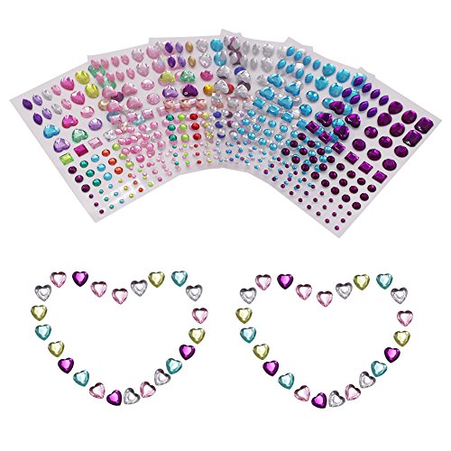 FeiZhu Self-adhesive Rhinestone Sticker Bling Craft Jewels Crystal Gem Stickers, Multi-color, Assorted Size, 6 Sheets (486)