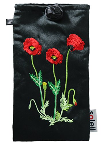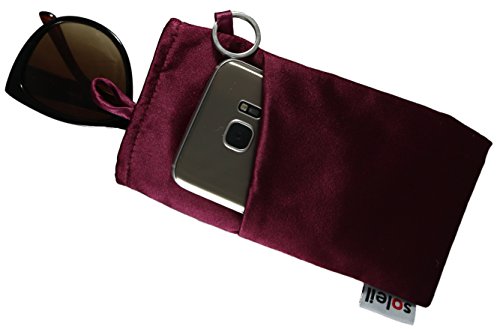 Binding : Apparel Product Description Lightly padded pouch for your eyeglasses (sunglasses, reading glasses, and prescription glasses). Dimensions are 7" x 3.9", able to accommodate your biggest sport wrap sunglasses. Vibrant colors and attractive embroidery on soft and durable Dracon fabric material. Inner lining made of microfiber to keep your products scratch-free. Secure knot and loop closure will keep your product from spilling out. Also has a second slot pocket in the back. An included key ring allows you to attach your pouch to your bag, jacket, or other items that you carry. You can also attach a strap to the key ring. High quality construction with 100% money back guarantee. 0