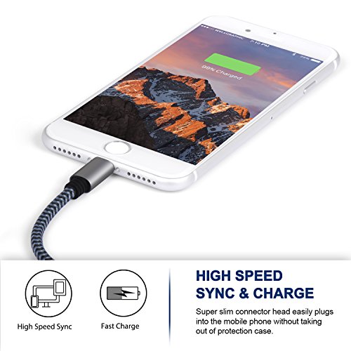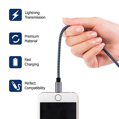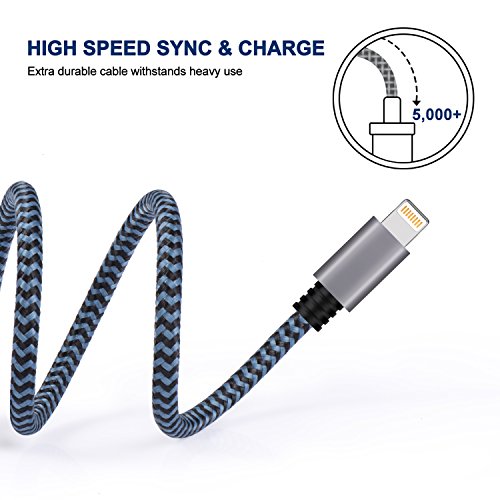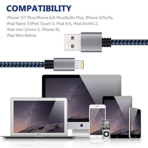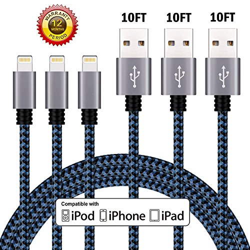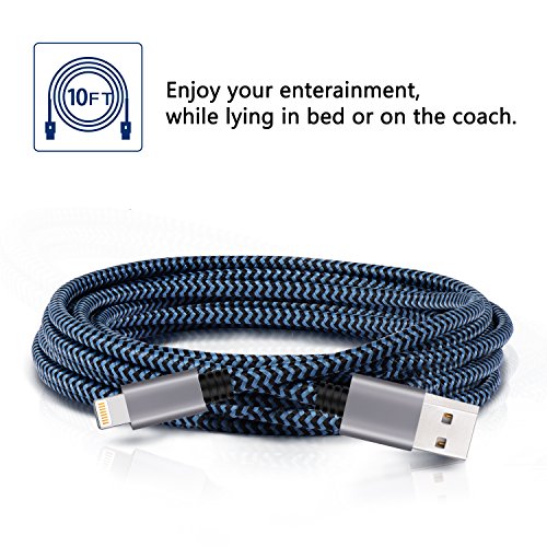 iPhone Charger Cable, Atill Premium Nylon Braided Lightning Cable Extra Long Charging Cord for iPhone 7 Plus 7 6 6s Plus 5 5s 5c SE iPad iPod & More( 3 Pack,Blue) (10ft) …