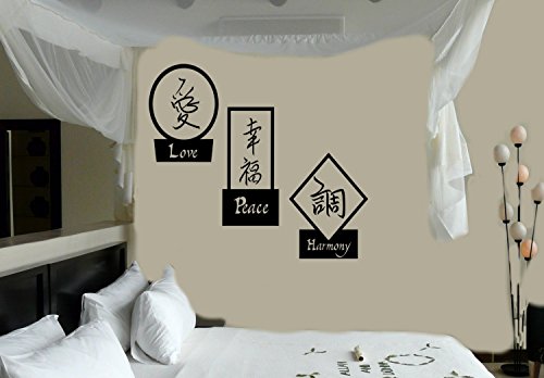 DNVEN (9"w X 11"h X 3pcs) Love Peace Harmony Chinese Kanji Symbols Virtues Vinyl Wall Decals Quotes Sayings Words Arts Decors Letterings Vinyl Wall Arts Inspirational Uplifting (Love Happiness Peace)