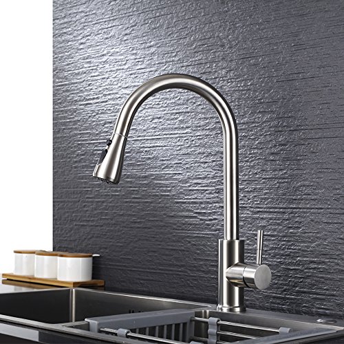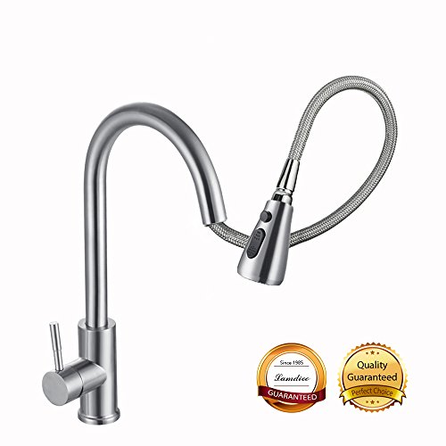 Lamdico High Arc Spot Resist Stainless Steel Kitchen Faucet, Single Handle Brushed Nickel Kitchen Sink Faucet Lead Free with Pull Down Sprayer Stream and Spray