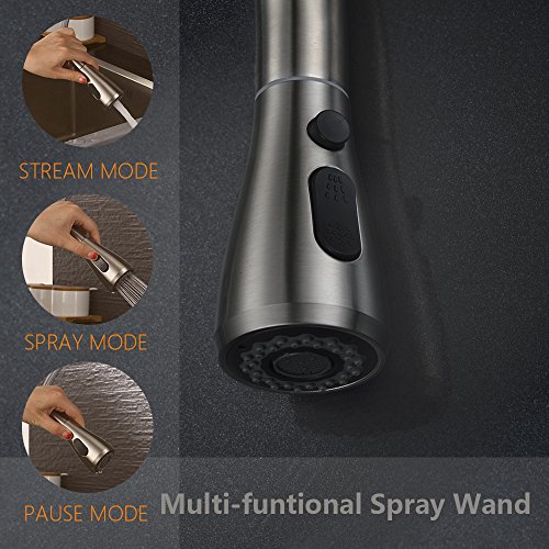 Anti-Sagging Spray Head & Anti Fouling Surface --Heavier weight (430g) makes sure the spray head snaps precisely into place. Brushed nickel surface and PVD technology make it easier to maintain clean and keep your kitchen neat