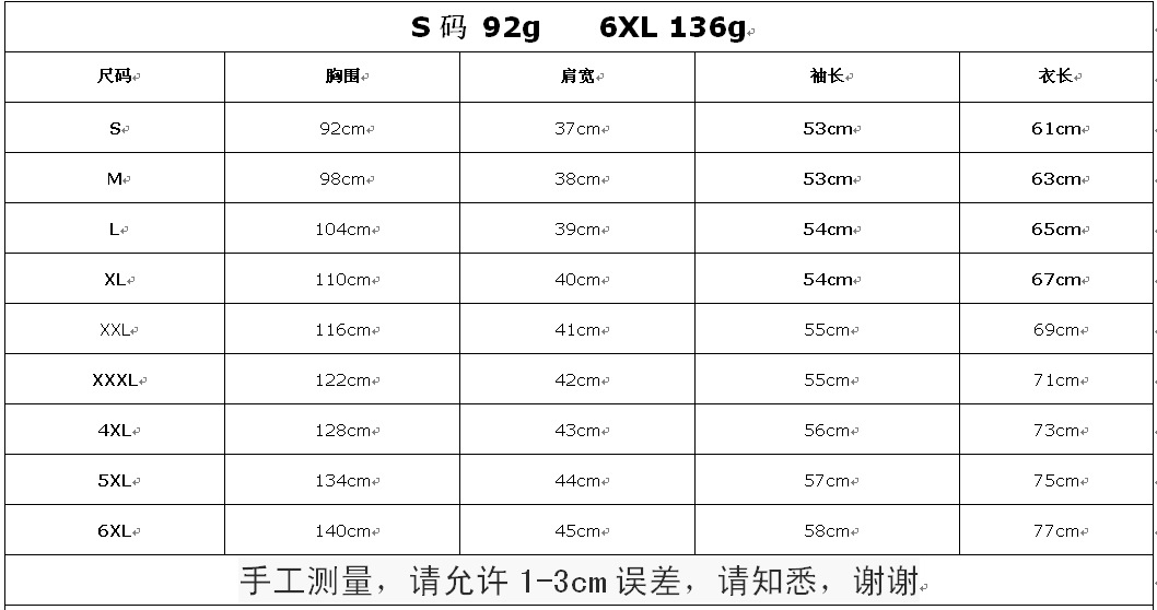 Size S M L XL 2XL 3XL 4XL 5XL 6XL