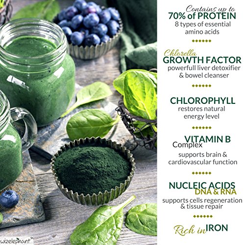 ✱ AMAZING HEALTH BENEFITS - It PURIFIES blood and brings body back to ALKALINE state. Cleansing CHLOROPHYLL restores natural ENERGY level. High in ANTIOXIDANT and enriched vitamin B complex. DETOXIFIES body and supports SKIN & HAIR health. Chlorella GROWTH FACTOR improves IMMUNE system & REPAIRES tissue cells. Enhances metabolism and speeds up WEIGHT LOSS. Improves MENTAL CLARITY and reduces FATIGUE.