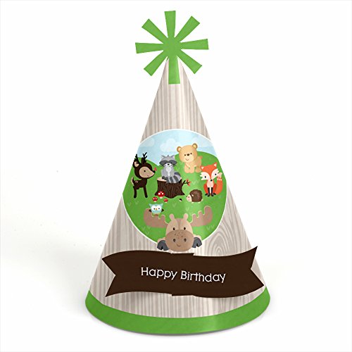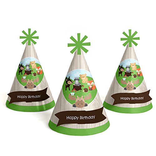 -. Title : Woodland Creatures - Cone Birthday Party Hats - 8 Count