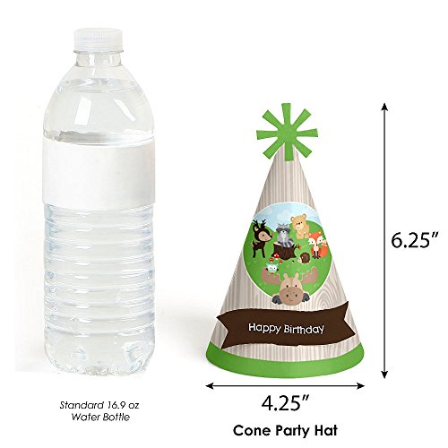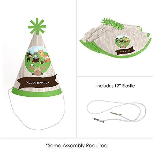 -. Feature : Woodland Creatures Party Hats INCLUDES 8 Woodland Creatures cone birthday party hats with decorative pop out flags and elastic chin straps Woodland Creatures party hats will fit both children and adults. / Woodland Creatures birthday party hats SIZE 6.25 inches tall and 4.25 inches in diameter at the base. The included elastic chin straps measure 12 inches long. Each of these fun forest friends party hats feature a unique star cut-out decoration at the top and pop-out flag stating "Happy Birthday". / FUN BIRTHDAY PARTY SUPPLIES: Woodland Creatures birthday party hats are perfect for your forest friends party. This set of cute party hats will help you take adorable party photos. They are sure to be enjoyed by all your friends and family - and the guest of honor! / PREMIUM PARTY HATS: Set of 8 Woodland Creatures party hats are professionally P.R.Inted on heavy-duty cardstock paper with a photo-like shine. They are individually inspected, then carefully packaged. Woodland Creatures cone birthday party hats will arrive flat, with the chin straps attached. Easy assembly is required. Simply roll the party hat into a cone shape and slide the tab into the slot to secure. / MADE IN THE USA: Woodland Creatures Cone Birthday Party Hats are designed and manufactured at our Wisconsin facility using materials that are Made in the USA.