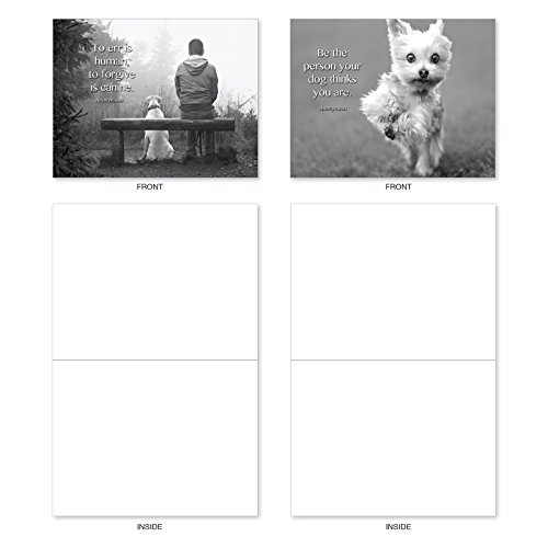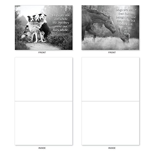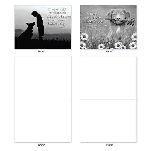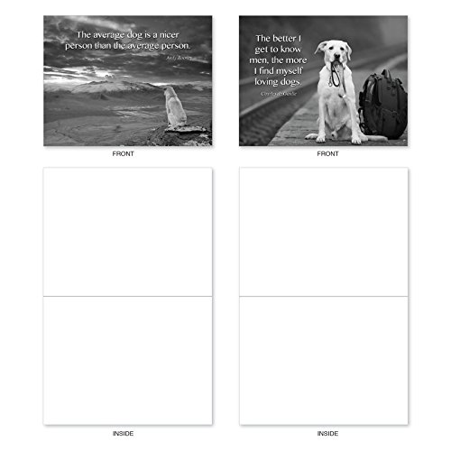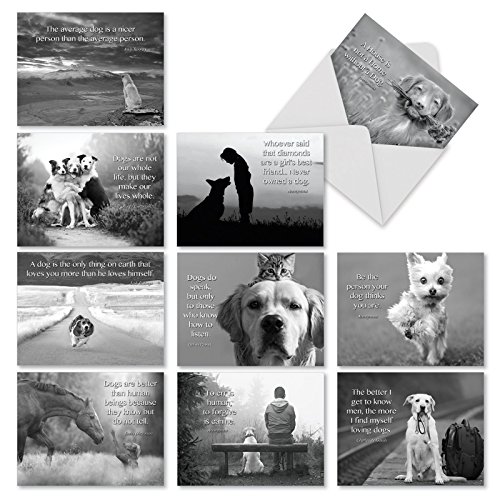 M1623BN Canine Comments: 10 Assorted Blank All-Occasion Note Cards Dogs Related Quotes Paired With Pictures In Black And White w/White Envelopes.