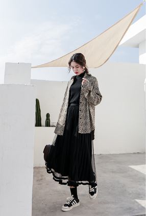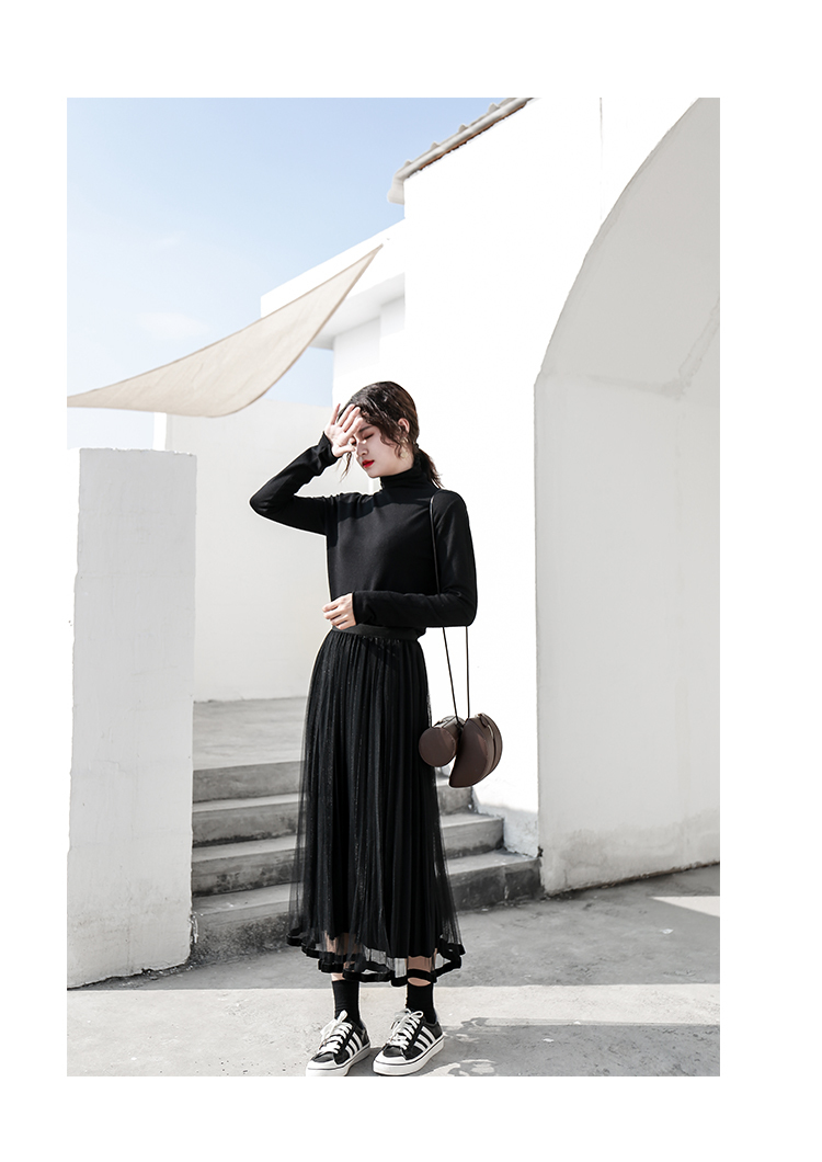 ブラック×ミモレ丈が甘くなりすぎず、クールな女性らしい印象に♪