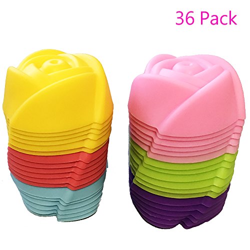 Magik 36 PCS Reusable Non-stick Silicone Mini Baking Muffin Cupcake Chocolate Cups (Rose)