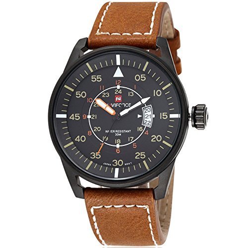 -. Binding : Watch -. Brand : Jewtme -. Department : Mens -. EAN : 0713382220897 -. Feature : Japanese High quality movement. Long Battery Life. / 12hours, date display. 3ATM water resistant (waterproof 30M). / Product Length:10.24in, Case size: 1.69*1.69in. thickness :0.36in, Suitable for wrist(perimeter): 6.25in to 8.07in / Material: high-quality titanium case ( not fade & not allergic ). Case cover: thick hardened mirror glass, Cowhide band. / Amazing looking watch with multifunction and elegant packaging. A great gift for your friends. The wrist watches would be your best choice. -. Label : NAVIFORCE -. Manufacturer : NAVIFORCE -. Model : NF9044 -. MPN : WT-136 -. PackageQuantity : 1 -. PartNumber : WT-136 -. ProductGroup : Watch -. ProductTypeName : WATCH -. Publisher : NAVIFORCE -. Studio : NAVIFORCE -. Title : NAVIFORCE Multifunction Outdoor Men Fashion Brown Leather Band Movement Quartz Men Watch -Black -. UPC : 713382220897