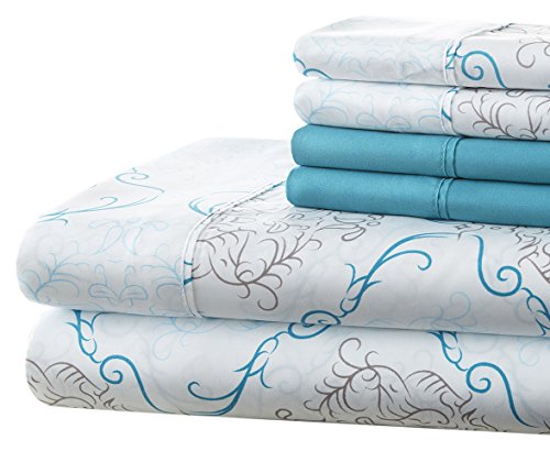 Spirit Linen, Inc Hotel 5th Ave Full Turquoise Floral 6 Piece Milan Home Sheet Set