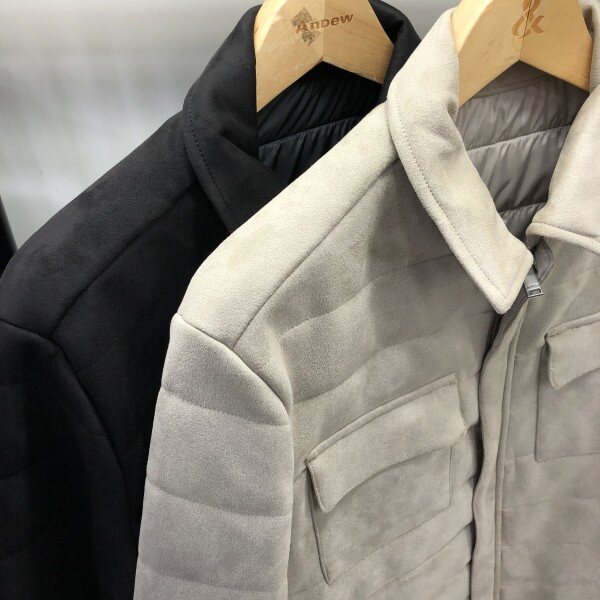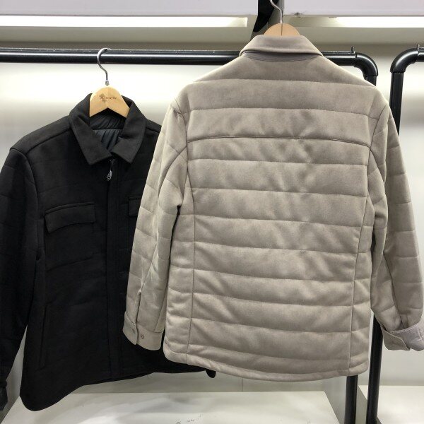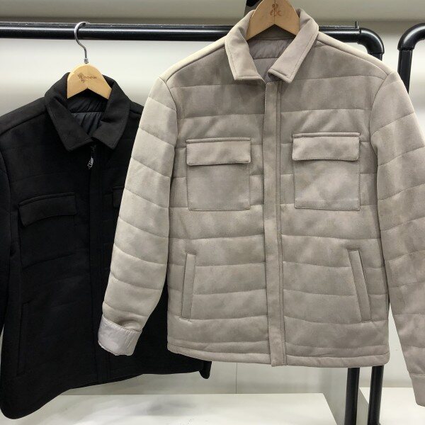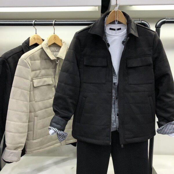 남성용 스웨이드 점퍼 제품입니다. 셔츠식 자켓 스타일로 깔끔하고, 스웨이드 원단으로 부드러운 착용감이 특징인 제품입니다. 밝아보이는 베이지, 기본적인 다크그레이 2가지 컬러로 깔끔한 디자인이어서 다양한 이너와 매치하시기 좋은 제품입니다. 오픈 타입의 디자인으로 사이즈가 슬림하게 나와 체격이 있으신 분이나 여유있게 착용하시는 분은 사이즈 업 하시는 것을 권해드립니다.