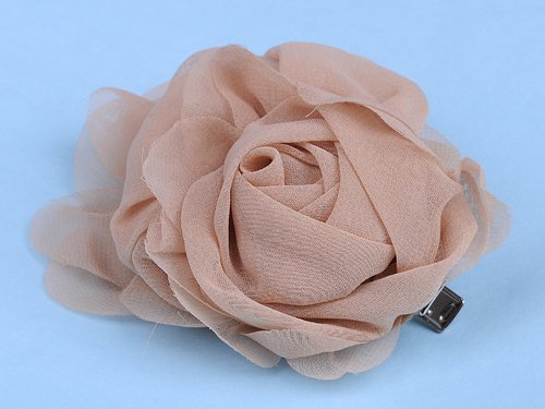 Featuring one large cream/beige colored rose, this hair clip measures approx. 4 inches by 3 inches. It is a gorgeous clip, perfect to be worn with any formal dress, great for creating that Classic Hollywood look.