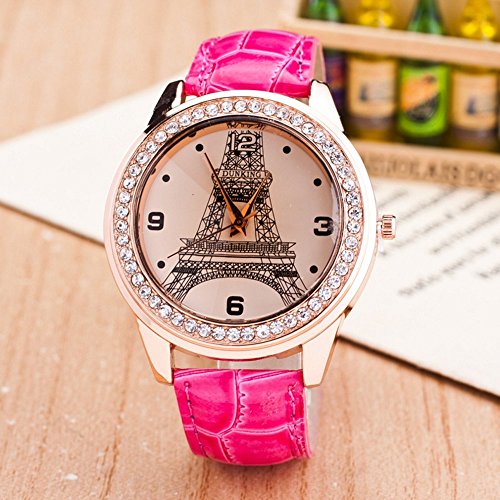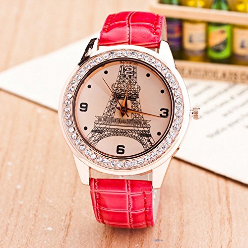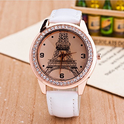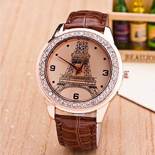 - Leather strap band design, Eiffel Tower pattern, Quartz movement, simple and decent style for women and girls.