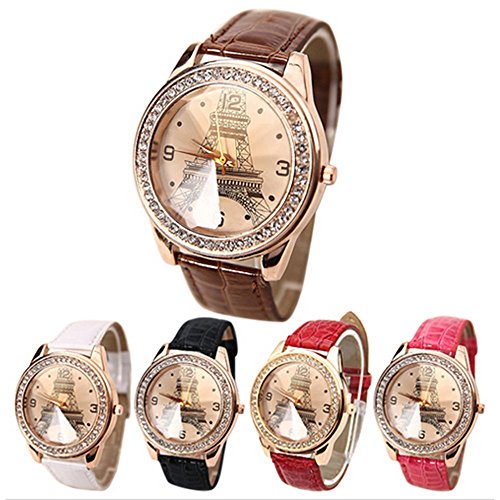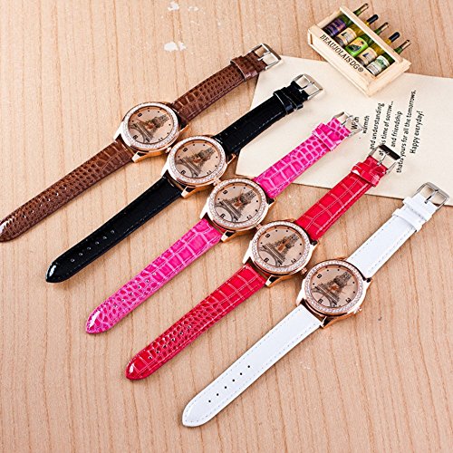 CdyBox Elegant Ladies Diamond Eiffel Tower PU Leather Band Wrist Watch Wholesale (5 Pack)