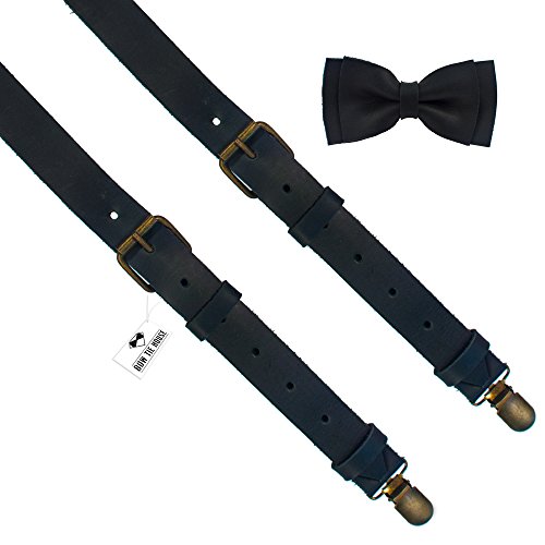 Binding : Apparel Product Description Real original leather always will be one of the biggest and essential characteristics of stylish. What will be better for one leather accessory? Of course, two leather accessories. Brand "Bow Tie House" presents for you this attractive couple of leather suspenders and leather bow tie. If you want to underline your special taste in casual clothes or look fantastic on the best friend's party choose this elegant accessory and you'll get three presents at once. the first you'll get a real leather bow tie. The second natural leather suspenders. Third real comfort. Besides, you can choose color what you like more. It can be black, red or another. All are great, just choose one for yourself. You can choose accessory to your eyes, to your clothes or to clothes of your lovely partner. This is just your choice. These accessories are made in Ukraine and have highly durable materials and natural Ukrainian leather. Both adults and children can easily use this pretty leather couple. These simple and elegant accessories have follow characteristics. Bow tie is 11 cm (4.33 inches) in length and 5 cm (1.96 inches) in width for neck 32-35 cm. Y-back suspenders are suitable for body height 90-195 cm. No doubt about high quality, because brand is guaranteed highly materials and hardware of these accessories. 0