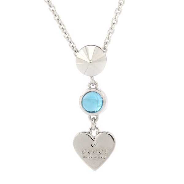 グッチ GUCCI ネックレス  商品仕様:(約)37.5cm、アジャスター:3cm、幅最大:0.1cm、トップ大1個:0.6cm、トップ中1個:0.5cm、トップ小1個:0.8×0.8cm、重さ:6.6g  トップ着脱不可、カラー:シルバー×ブルー 専用袋、専用箱、取扱説明書