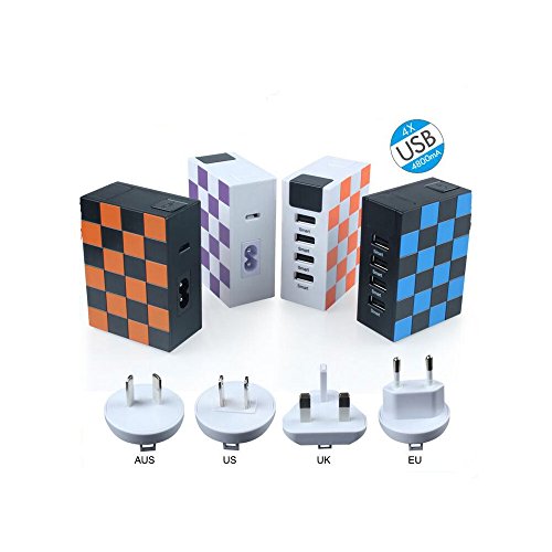 FunPay Smart Multiple USB Charger Universal Travel Adapter with Digital Tube Display for Travelers All Over The World (Black+Orange)