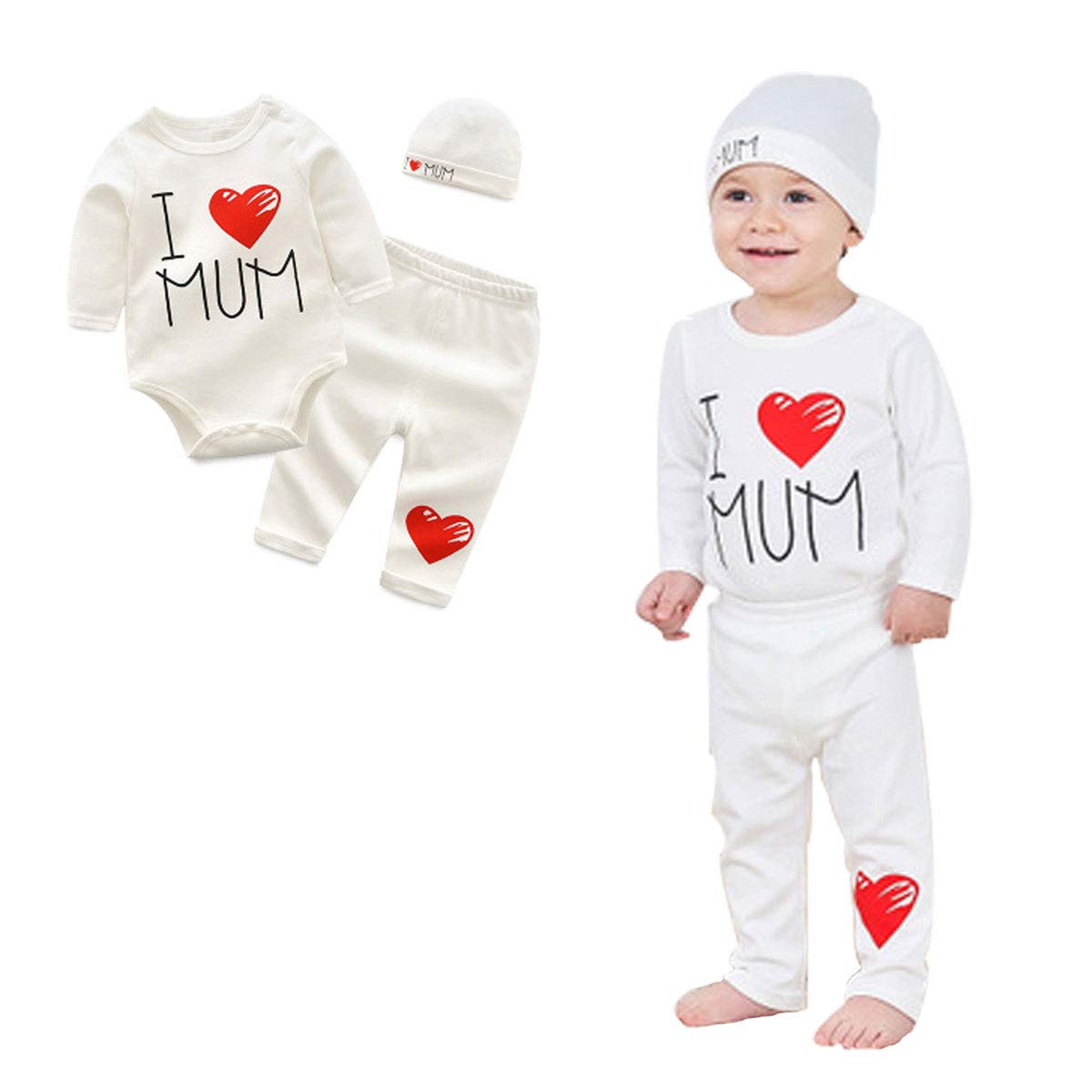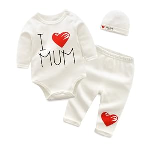 長袖ロンパース+パンツ+帽子 三点セット