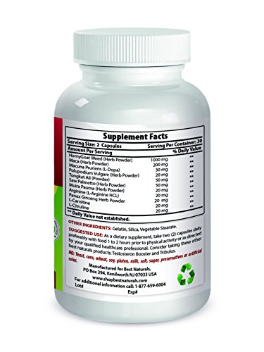 Best Naturals HORNY GOAT WEED FOR MEN & WOMEN - This complex is a unique combination of several herbs that have been used by MEN & WOMEN for centuries in Chinese herbal tradition, including Maca Root,Tongkat Ali, Muira Puama, Ginseng, Arginine & Carnitine. This Best Naturals formula was scientifically formulated with just the right amount of each ingredient to maximize results.