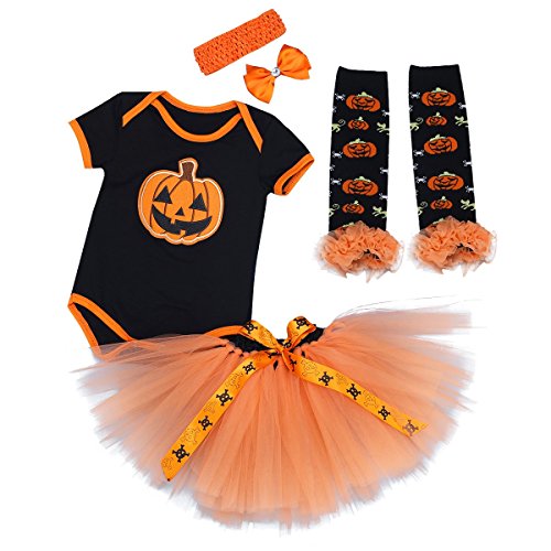 -. Title : TiaoBug 4Pcs Infant Girls Halloween Cosplay Pumpkin Romper with Tutu Skirt Leg Warmers Headband Outfits