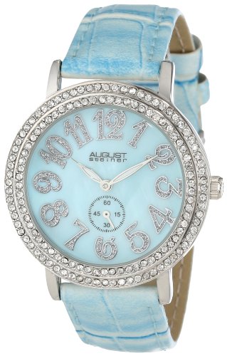 August Steiner Women's AS8030BU Mother-Of-Pearl Crystal Quartz Strap Watch