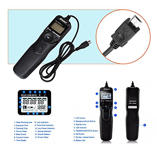This wired timer remote control supports single shooting, bulb shooting, delay shooting and timer shooting modes,And design for group, macro, long exposures, continuous, motion shooting, etc