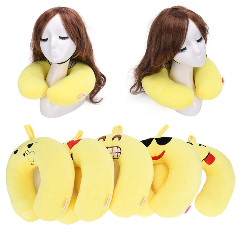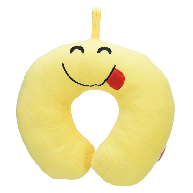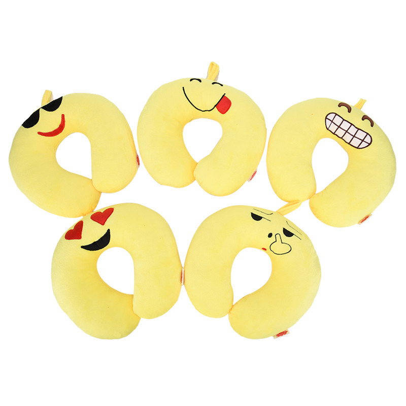 Creative U-Shape yellow brown soft neck head rest Emoji Pillow, Cartoon Emoticon Cushion Throw Pillows, Amusing plush Toy Doll.